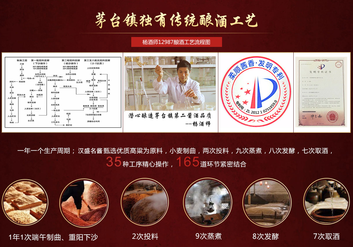 杨蔚然酒师十六岁就跟父辈学烤酒,传承父辈大曲纯粮酱香酿造工艺,专研酿酒三十多年未曾中断,杨氏酿酒世家在茅台镇也有很多遗迹,比如杨家井,就是茅台镇的酒商曾用杨家的井水来酿酒。