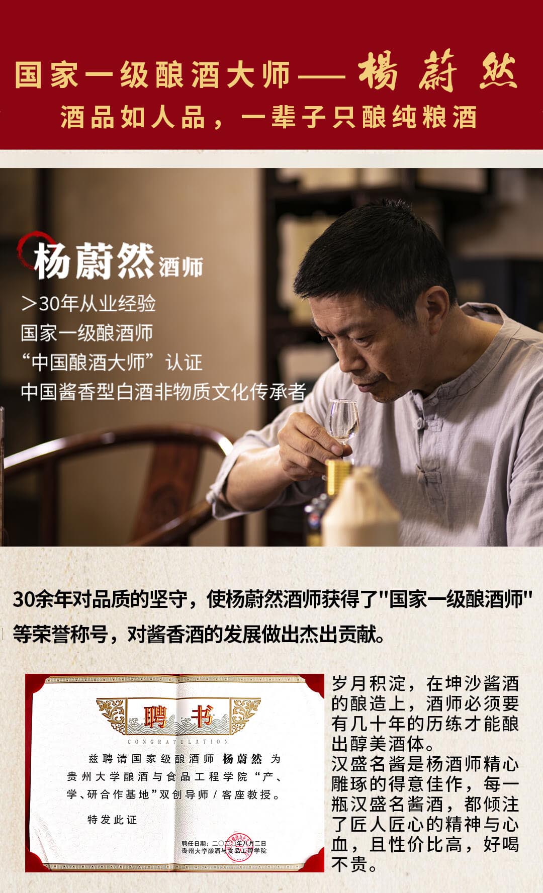 正因为对品质坚守的匠人精神,使杨蔚然酒师获得了“国家一级品酒师”、“中国酿酒大师”等国家级认证,并获聘贵州大学酿酒与食品工程学院荣誉教授等称号。